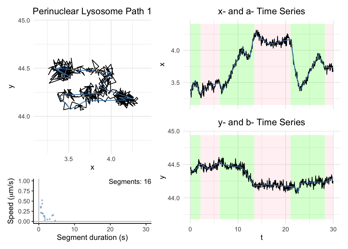 The dataset provided here contains lysosome trajectories collected in the peripheral regions of cells by Payne’s Lab. These data represent the movement of intracellular cargos (lysosomes) driven by molecular motors, which undergo intermittent transitions between transport states.